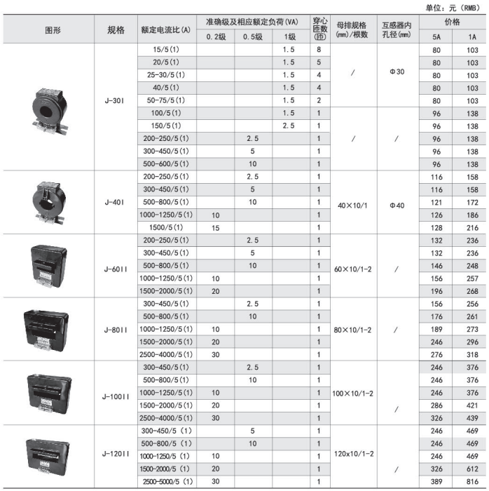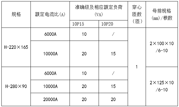 規(guī)格 | 額定電流比(A) | 準確級 | 穿心匝數(shù) | 母排規(guī)格/根數(shù) | |