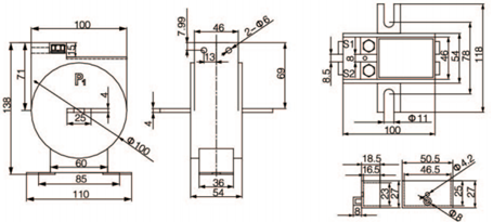 規(guī)格 | 額定電流比(A) | 準確級 | 穿心匝數(shù) | 母排規(guī)格/根數(shù) | 電纜最大外徑(mm) | |