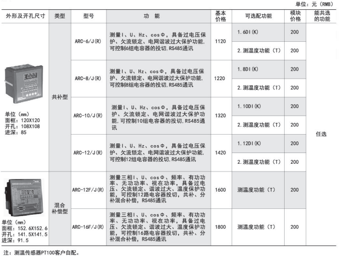 具體型號(hào):ARC-6/J-KT共補(bǔ)型外形及尺寸