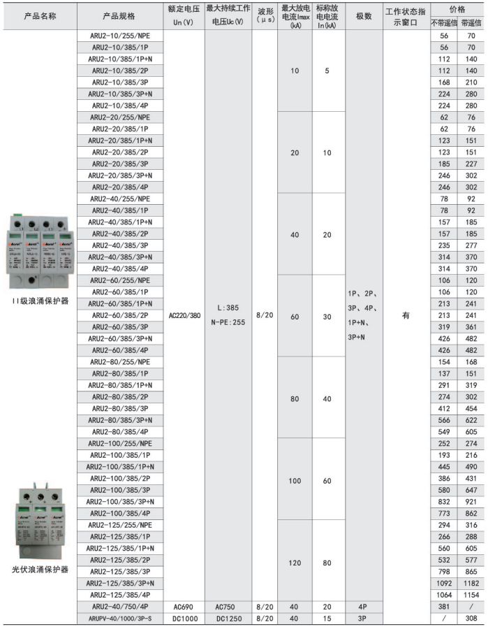 ARU系列浪涌保護器是一種為各種電子設備、儀器儀表、通訊線路、低壓電氣線路提供安全防護的電子裝置。適用于交流50/60Hz,額定電壓380V的供電系統(tǒng)或光伏系統(tǒng),對間接雷電和直接雷電影響或其他瞬時過電壓的電涌進行保護。