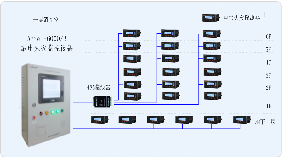 本項(xiàng)目地上六層,地下一層?,F(xiàn)需對(duì)整個(gè)紅星美凱龍家居生活廣場(chǎng)重要用電回路進(jìn)行監(jiān)控。安科瑞電氣股份有限公司為本項(xiàng)目設(shè)計(jì)一套Acrel-6000/B漏電火災(zāi)監(jiān)控系統(tǒng),并在重要進(jìn)線回路安裝電氣火災(zāi)探測(cè)器ARCM200,由此來(lái)實(shí)時(shí)監(jiān)測(cè)變電所內(nèi)重要回路的漏電流,以確保變電所配電系統(tǒng)的電氣安全。