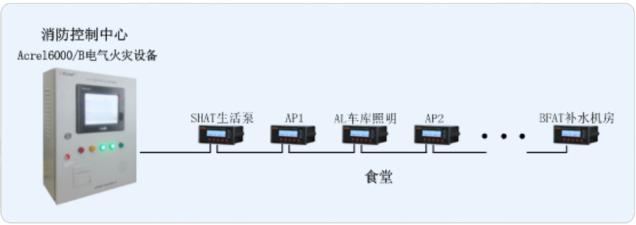 新食堂為地上三層、地下一層,占地面積約為2100平方米,地上建筑面積約為6300平方米。我司承接其電氣火災系統(tǒng)的搭建,對安裝于食堂樓層配電箱進線處的ARCM200系列剩余電流火災探測器設計一套Acrel-6000/B電氣火災系統(tǒng),由此來實時監(jiān)測樓層內重要回路的漏電流,以確保變電所配電系統(tǒng)的電氣安全。