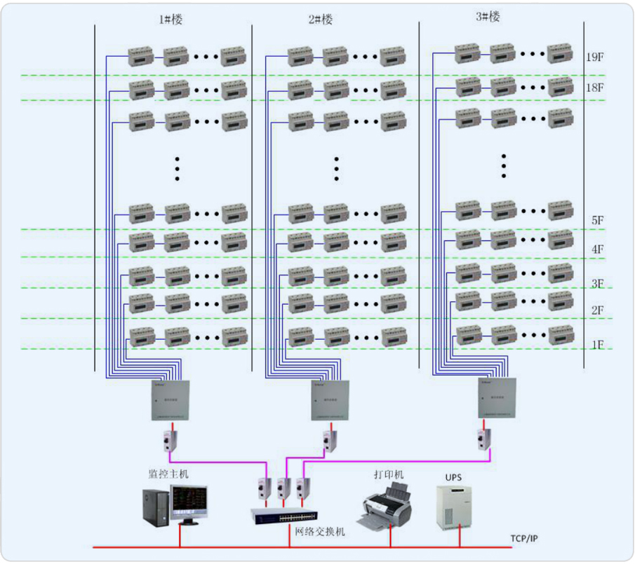項(xiàng)目對(duì)黃金時(shí)代大廈各動(dòng)力箱、照明箱等終端配電箱內(nèi)各用電回路用電量進(jìn)行電能管理,系統(tǒng)通過(guò)多功能的電能計(jì)量表計(jì)、通訊網(wǎng)絡(luò)和計(jì)算機(jī)軟件,實(shí)現(xiàn)各用電設(shè)備在運(yùn)行過(guò)程中的實(shí)時(shí)數(shù)據(jù)采集、數(shù)據(jù)計(jì)算、數(shù)據(jù)統(tǒng)計(jì)、用電分析等,保證復(fù)雜供配電系統(tǒng)的安全可靠系數(shù),實(shí)現(xiàn)故障快速響應(yīng);掌握大廈能源消耗的成本結(jié)構(gòu),確保節(jié)能計(jì)劃和措施順利實(shí)施;科學(xué)、智能管理,提高效率,降低損耗,實(shí)現(xiàn)經(jīng)營(yíng)成本優(yōu)化。系統(tǒng)由站控管理層、網(wǎng)絡(luò)通訊層和現(xiàn)場(chǎng)設(shè)備層構(gòu)成。系統(tǒng)要求盡量減少集中采集數(shù)據(jù)的裝置以保證系統(tǒng)的通訊可靠性。