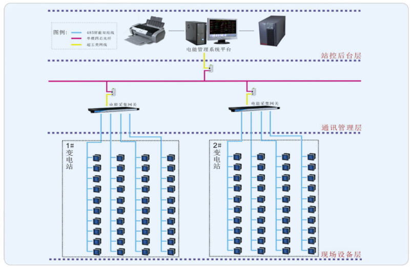 2.各個變電所內(nèi)進出線回路的電能和電參量的數(shù)據(jù)采集、電能計量。